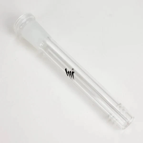 HIT Glasses. High quality glass stem for water pipe. Clear color Joint Diameter : 18mm(Outter) / 14mm (Inner) Total Length: 4,5,6 and 7 inches available. 6 slits downstem Open-ended ( Bottom Fully Opened )